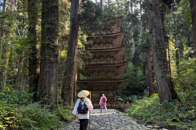 L’étape qui m’a le plus marquée c’est le Mont Haguro. En fait c’est une montagne sacrée. Il y en a trois dans la région et on était accompagnés d’un yamabushi, c’est un moine ascétique.